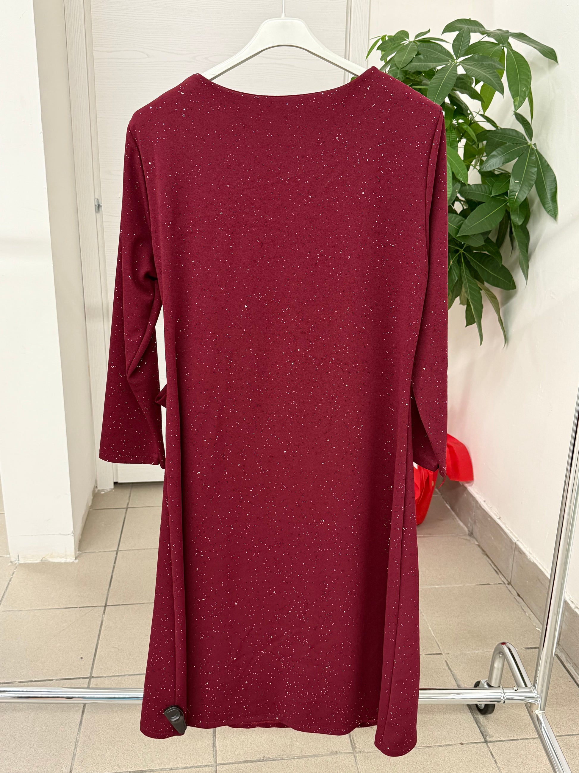 Abito lungo brillantinato con fiocco laterale, per taglie curvy